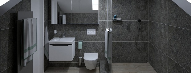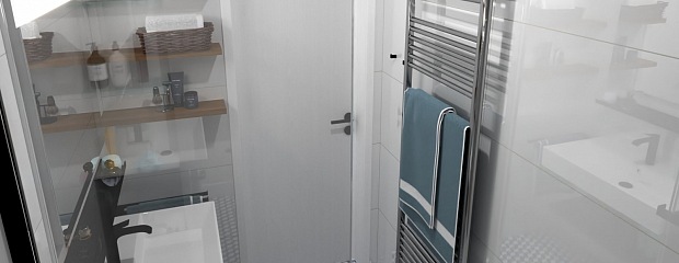 Koupelna v půdní vestavbě na Praze 1 v Jirchářích