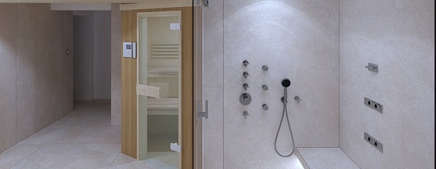 Sauna se sprchovou zónou v RD na Praze 4